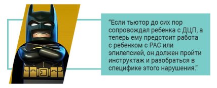 Да и восприятие играет роль. Когда другие дети, или сотрудники школы задают вопросы, или ведут себя нетактично, родителям это причиняет боль. А тьютор профессионально и спокойно решает ситуацию.
