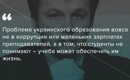Проблема украинского образования вовсе не в коррупции или маленьких зарплатах преподавателей, а в том, что студенты не понимают – учеба может обеспечить им жизнь. В США обыкновенный студент в моем классе четко осознает, что если он получит хорошие оценки, то будет работать на Уолл-стрит с годовой зарплатой в $200 тыс., а если плохие, то в Макдональдсе за $50 тыс. Поэтому за оценки и знания учащиеся дерутся бешено и при этом сами борются с коррупцией.