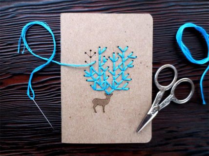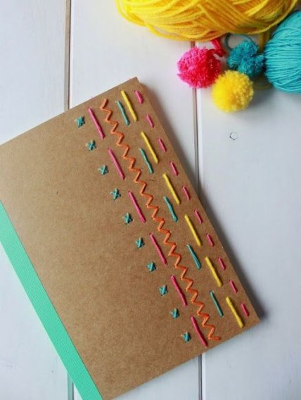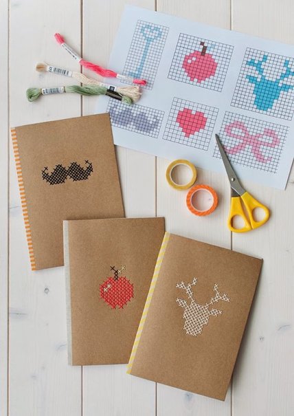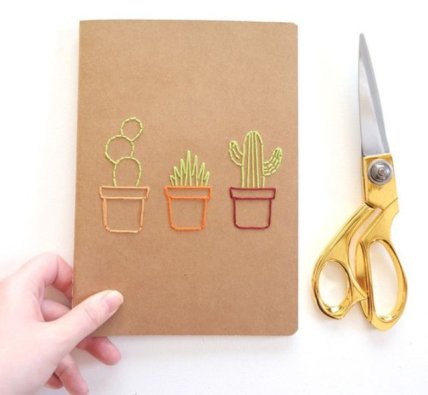 Вышивка на тетради. Звучит странно, но выглядит очень красиво и необычно. Такой декор подойдет для тетрадок с однотонными и мягкими картонными обложками.