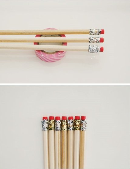 Самые простые карандаши, клей ПВА и блестки – вот все, что понадобится, чтобы дать вторую жизнь обычным школьным принадлежностям.
