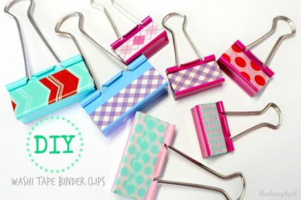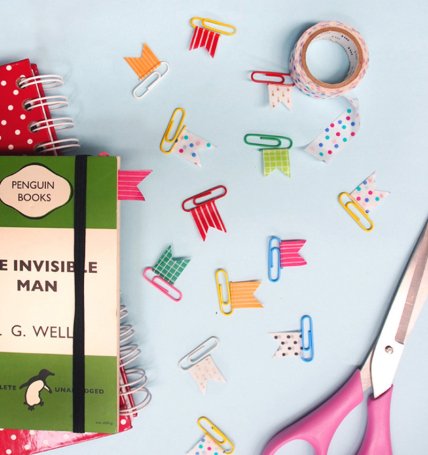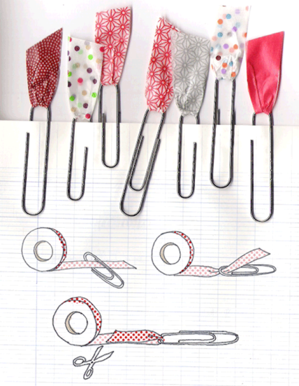 Декоративную клейкую ленту можно завязать на скрепке либо пристроить к ней в виде флажка. Такие красивые скрепки можно использовать даже как необычные закладки для книг.