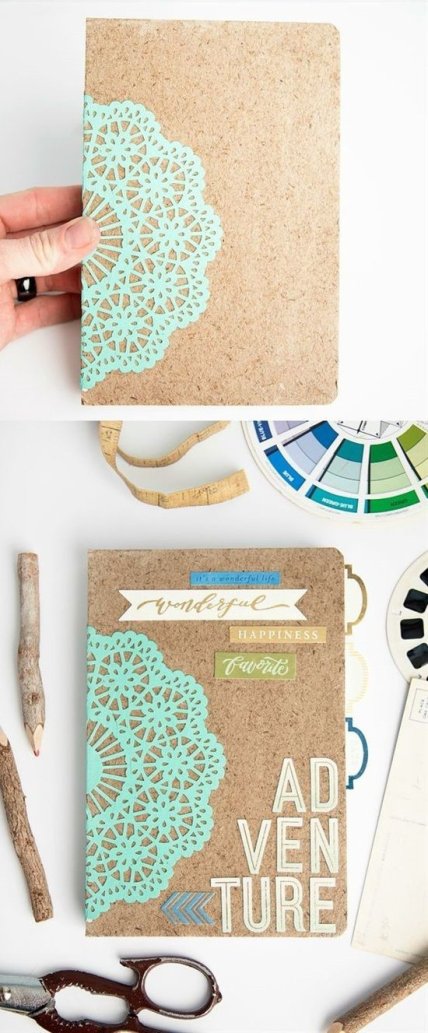 Девочкам особенно понравится такая идея украшения школьных принадлежностей. Ажурный декор для обложки тетрадки так и создан для романтичных школьниц.
