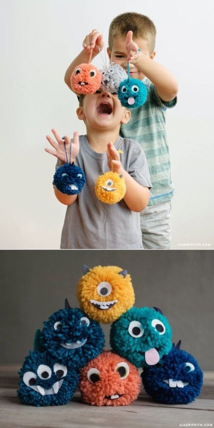 Чтобы порадовать младших братиков, сестричек или племянников, сделайте для них игрушки из помпонов. Это могут быть разные монстрики или зверушки из помпонов, кролики или цыплята из помпонов. Детки с удовольствие будут играть такими мягкими и очень милыми игрушками.