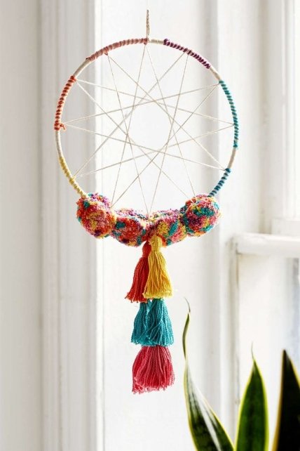 Ловец снов — индейский талисман, который, по поверьям, защищает спящего от злых духов. А еще это прикольный декор в комнату и классный подарок. Добавьте к ловцу яркие помпоны и смотрите только самые приятные сны.
