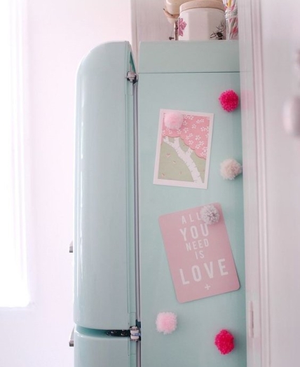 Задекорируйте скучные магниты на холодильник, приклеив к ним пушистые помпоны, и оставляйте родным послания перед своим уходом к друзьям или за покупками. Или чтоб не забыли покормить кота.