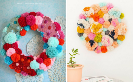 Поделки из помпонов: декоративные веночки из помпонов на стену