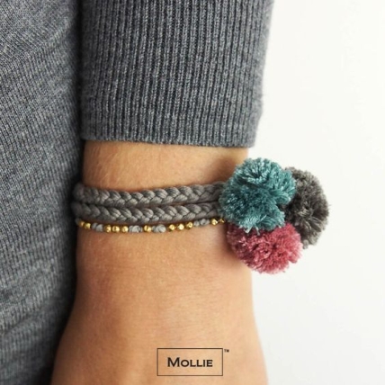 Несколько браслетов на одной руке — современный тренд у подростков. Браслет с помпонами будет хорошо сочетаться с браслетами из кожаных шнурков или браслетами из ткани. К тому же, браслет с помпонами многосезонный и отлично будет смотреться даже под осенний свитшот.