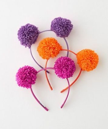 Необычные ободки на волосы уже какой год подряд лидируют среди различных украшений для девочек. Если ободки с ушками вам уже поднадоели, замените ушки на яркие помпоны. Не бойтесь выделяться!