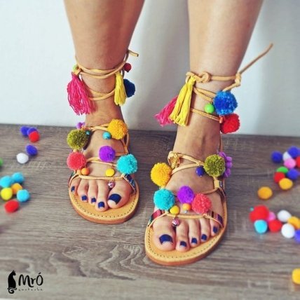 Надоели прошлогодние босоножки? Обновите их самодельными помпонами и ваша обувь будет как новая. Кстати, помпонами из ниток можно украшать не только босоножки, но и шлепанцы, балетки, туфли-лодочки и даже кеды.