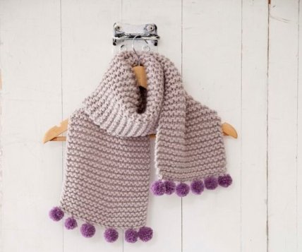 Симпатичные помпоны могут быть не только на шапках. Особенно красиво они смотряться на шарфах крупной вязки. Такой теплый шарф с яркими помпонами согреет даже в самый лютый холод.