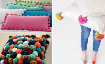 Мягкие помпоны просто созданны для подушек. Помпонами можно украсить всю подушку, только уголки подушки либо же задекорировать подушку по периметру — выбирать вам, но любой вариант будет смотреться восхитительно.