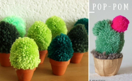 В вашей семье не особо любят следить за растениями, но уж очень хочется добавить зелени? Сделайте симпатичные какутсы и суккуленты из помпонов и расставьте их по комнатам. Оригинально, правда же?