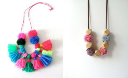 Мягкие помпоны будут интересно смотреться в ожерелье на шею. Такие бусы своими руками станут оригинальным дополнением к луку в стиле бохо-шик: многослойная одежда, цыганские или этнические мотивы, фактурность и драпировка.