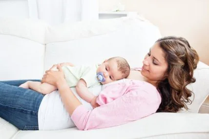 Пауза для отдыха. Во время игр полезно сделать небольшую передышку и немного полежать на диване рядом с крохой. Можно, также, разместить его у себя на груди. Малыш почувствует ваше спокойное дыхание и тоже успокоится. А время, проведенное вместе, положительно скажется как на маме, так и на крохе!