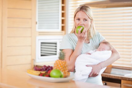 Правильное питание. Конечно, если молодая мама кормит грудью, то она, скорее всего, знакома с основными «можно» и «нельзя» в своем меню. Заветы правильного питания как обычно просты - меньше мучного, сладкого, консервантов, жареного и жирного, все эти продукты не способствуют похудению и блокируют эластичность мышц. Питаться лучше дробно, мелкими порциями, 4-6 раз в день.