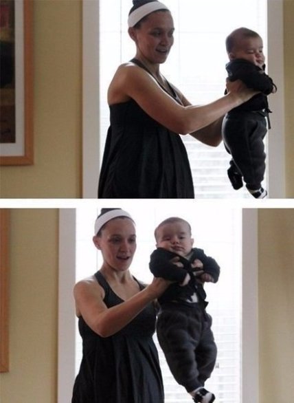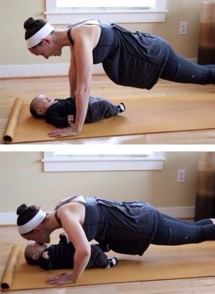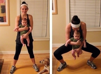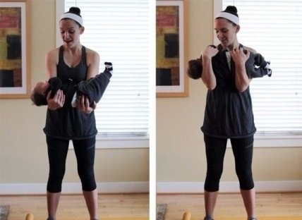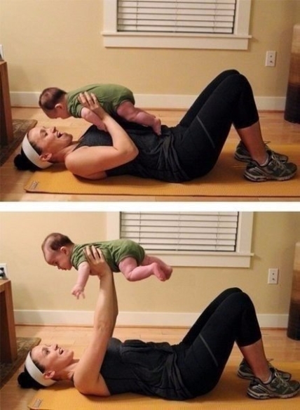 Найдите немного времени для упражнений с ребенком на руках. Так вы себя сможете вернуть форму после беременности, а малыш забавно проведет время с мамой.