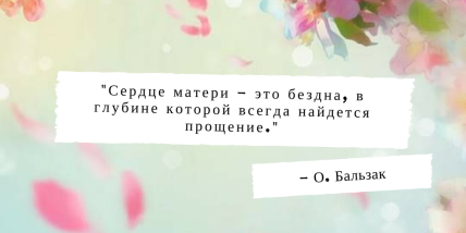 Материнское сердце – глубочайшая пропасть, на дне который вы неизбежно найдете прощение. О. де Бальзак