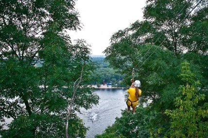 По самой большой в Украине веревочной переправе (532 метра) можно спуститься от смотровой площадки возле Арки Дружбы Народов до пляжа на Трухановом острове. Над Днепром троллей протянули впервые в 2012 году. Стартует сезон в эту субботу, 26 апреля.