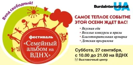 Первый в Украине Burda Family Fest «Семейный альбом на ВДНХ», который 27 сентября пройдет под эгидой Издательства «Бурда-Украина» в Национальном комплексе «Экспоцентр Украины» (ВДНХ), - это отличная возможность ярко и весело провести субботний день всей семьей.