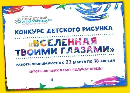 Сферический кинотеатр ATMASFERA360/Киевский планетарий рад объявить о старте конкурса детского рисунка «Вселенная твоими глазами». Начиная с 23 марта и до 10 апреля, ждем рисунки ваших детей, на которых должны быть изображены их фантазии на тему Космоса и нашей Вселенной. Рисунки необходимо приносить на кассу ATMASFERA360/Киевский планетарий, с обратной стороны обязательно указать имя, фамилию и возраст автора, а также контактный телефон.