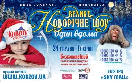 Самый большой цирк в Украине Цирк «Кобзов» приглашает детей и их родителей, а также всех, кто хочет окунуться в мир сказки, на шоу «Один дома» в потрясающий новогодний сюжет, полный интересных приключений.