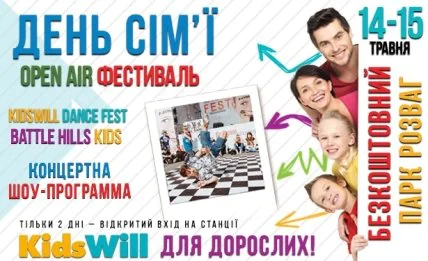 14-15 мая ТРЦ ARTMall и детский город профессий KidsWill приглашают всех на фестиваль “День Семьи”! Это будет незабываемый праздник для детей и их родителей — современный, яркий и интересный! Здесь каждый посетитель найдет то, что ему по душе.