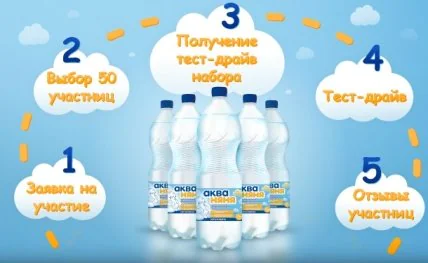 3.Участники тест-драйва получают «тест-драйв набор» детской воды «Аква Няня» (12 бутылок, по 1,5 л.).