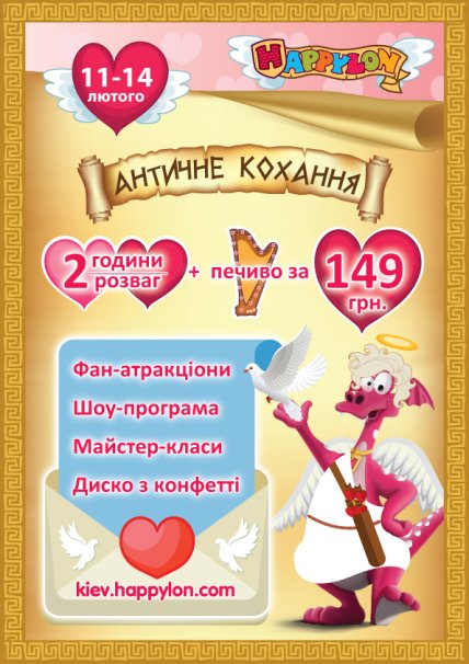 Приглашаем отпраздновать самый романтичный праздник зимы в Хэппилоне. Мы подготовили для вас оригинальную тематику, шоу-программу и интересную акцию на развлечения:
