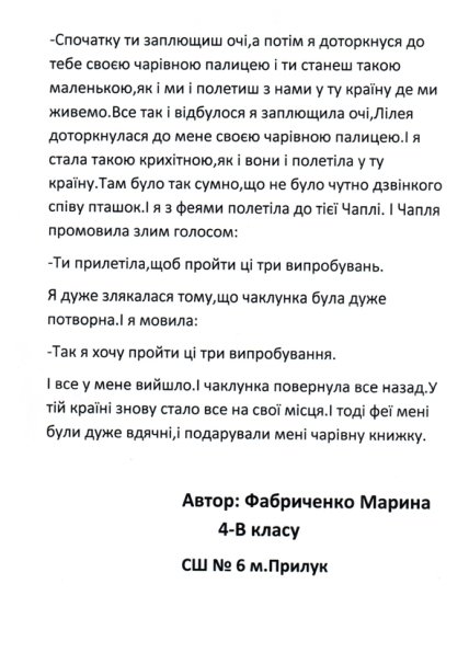 Сегодня предлагаем тебе почитать сказку Марины Фабриченко из г. Прилуки Черниговской области.