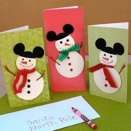 - Распечатайте шаблон и вырежьте снеговика и ушки Микки Мауса.