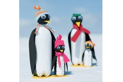 1. Для каждого пингвина – влить две части черной краски и одну часть воды внутрь бутылки (мы использовали 1 до 4 столовых ложки краски в зависимости от размера бутылки). Закройте бутылку и встряхните ее.
