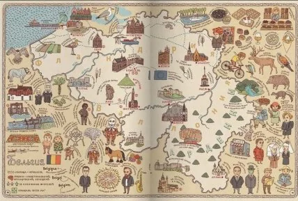 Когда книга «Карты» вышла в 2012 году, она сразу стала бестселлером! Но особенность украинского издания в том, что впервые в нем появилась карта Украины, созданная таким оригинальным способом. Представители украинского издательства обратились к художникам, работавшим над книгой, и ими была создана карта нашей страны! Интересно, что все в книге представлено очень необычным образом. В Украине художники сразу выделили, например, самую длинную троллейбусную линию, крымский дворец хана. Каждую страничку книги можно разглядывать бесконечно и находить все новые и новые интересные детали!