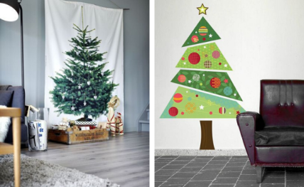 Может, действительно, не так уж и нужна настоящая елка. Пока ребенок маленький и тянет все в рот, можно обойтись нарисованной новогодней елкой. Сделать ее самому, купить специальные наклейки (например, тут), искусственную елку из фанеры или картона (посмотрите вариант по ссылке), или напечатать на ткани (одно время продавалось готовое панно в IKEA, но сейчас его сняли с производства, так что придется заказывать печать, например, в этой типографии). Заодно и место в квартире сэкономите.