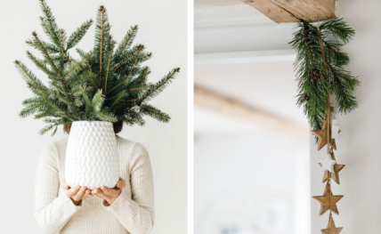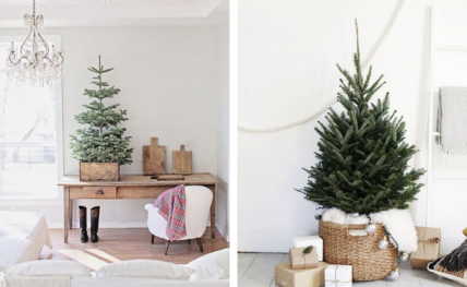 Еще один очень простой вариант - не украшать елку. Совсем. Если это красивая ель или сосна, то игрушки ей особо ни к чему. На фото пара вариантов, как в минималистичном интерьере элегантно выглядит натуральное дерево без мишуры и игрушек.