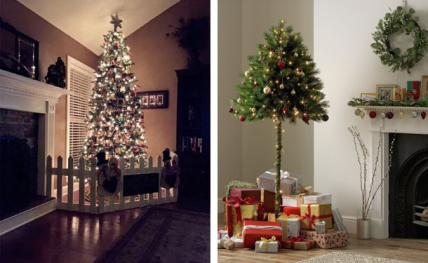 Если вы настроены решительно поставить в квартире большую ель или сосну на Новый год и украшать ее так, как привыкли, то сделайте вокруг дерева ограждения из специальных детских ворот, которые обычно используют для того, чтобы ребенок не упал с лестницы или не выходил из комнаты.