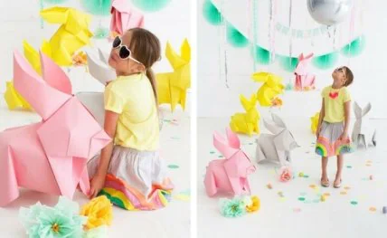 Предлагаем вашему вниманию пошаговую инструкцию, как сделать гигантского пасхального кролика из бумаги в технике оригами, чтобы украсить детский сад или просто порадовать детей.