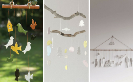 Вы уже знаете, как сделать оригинальный мобиль с ловцами света из расплавленных бусин и даже опробовали какие-то идеи мобилей из дерева, поэтому самое время изготовить для нового мобиля фигурки из холодного фарфора. Очень нежные, правда?