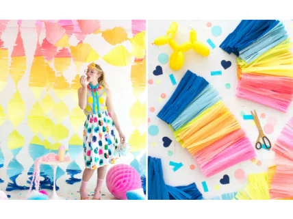 И пусть вас не смущает этот, на первый взгляд, простой способ декора, ведь с оригинальным подходом к развешиванию такой гирлянды-бахромы, вы получите отличную идеей для вечеринки и создания праздничного настроения. Большими гирляндами с бахромой из гофрированной бумаги можно украсить не только стены, но и праздничный стол. А если вы сделаете еще и пушистые бумажные помпоны, веселью гостей не будет предела.