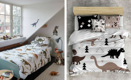 Постельное белье и текстиль с динозаврами для детской комнаты