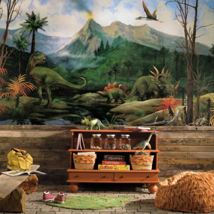 Идеи для оформления стен в детской комнате изображениями динозавров