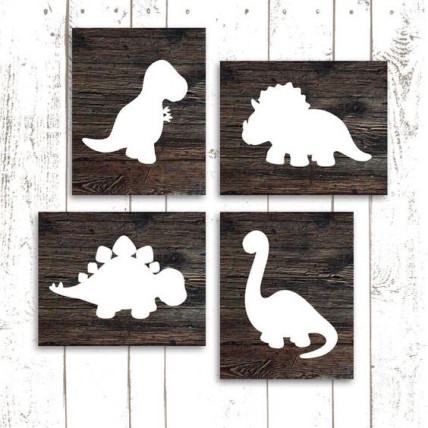Это могут быть декоративные наклейки на стену в детскую комнату или обои с динозаврами. Также вы можете купить фоторамки и сделать картины с динозаврами своими руками из цветного картона или обрезков ткани, нарисовать этих замечтальных доисторических животных акварелью или сделать с детьми коллажи. А, возможно, наши идеи вдохновят вас на свое решение, как необычно оформить стены в детской комнате.