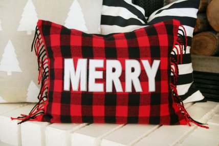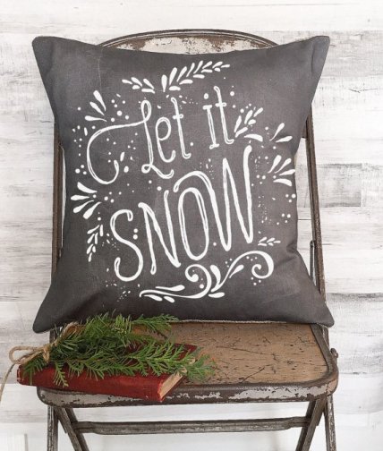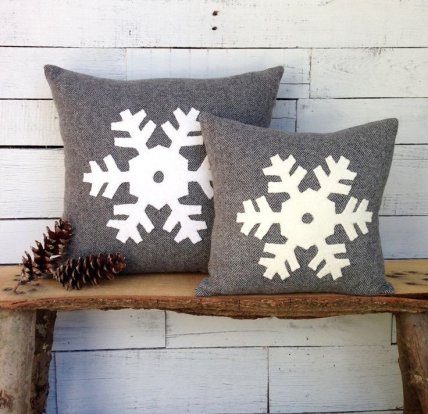Декоративные подушки к Новому году можно украсить надписями. Что написать? Да все, что угодно от пожеланий на Новый год до любимых цитат про зиму и зимние праздники. Надписи могут быть из ткани, фетра, написанные краской или вышитые нитками.