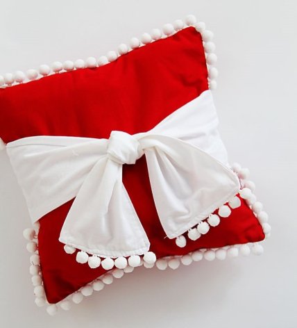 Мягкие и пушистые помпоны, сделанные своими руками, смогут украсить любую, даже самую скучную подушку. Пришейте их в виде елки, снеговика, носа оленя или в виде украшения надписи. А еще маленькими помпонами можно красиво задекорировать подушку по периметру. Уверены, новогодняя подушка с помпонами станет самой любимой подушкой у ваших домочадцев.
