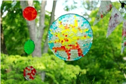 Готовый «Ловец солнца» будет похож на цветной леденец. Охладите его, снимите форму и остатки фольги, закрепите на нитку и повесьте у окна или на балконе.
