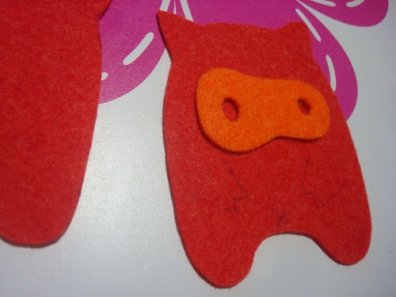 3. Следующий этап – вышить на фетре мордочки и потом пришить мелкие детальки.