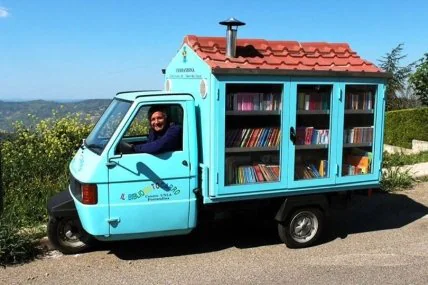 Выйдя на пенсию, он купил трехколесный грузовичок небесного цвета и переоборудовал его в детскую библиотеку на колесах. Антонио дал своему фургону имя Bibliomotocarro.