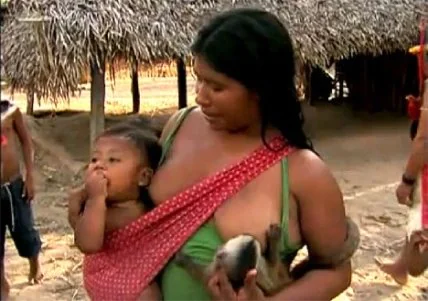 Трудно поверить, но эта традиция сохранилась у некоторых современных народов. Кормящая мама верит, что таким способом может сохранить соски здоровыми, справиться с большим количеством молока, которого много для малыша. Например, в Гайане наблюдали туземных женщин за грудным вскармливание различных животных, включая обезьян, опоссумов и оленей.