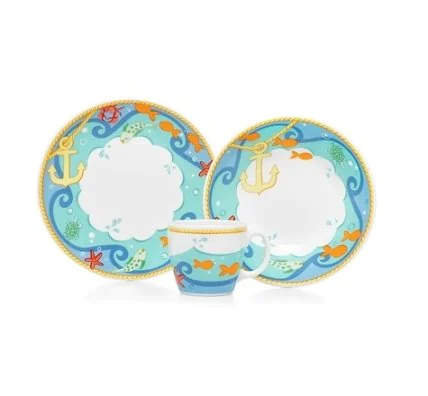 А набор первой посуды из высококачественного фарфора - это поистине аристократичный подарок. Кстати, каждый год Тиффани обновляют коллекцию посуды для малышей, оформляя их новыми красочными рисунками. В этом сезоне у нас морская тема и цыплята.