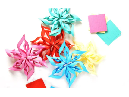 Вы можете обрезать концы полосочек, которые выглядывают в отдельных частях объемной снежинки, или оставить, как есть.