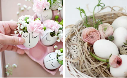 Цветы прекрасны сами по себе. Но если вы решили их стилизовать под пасхальные украшения, вот несколько оригинальных идей на фото.